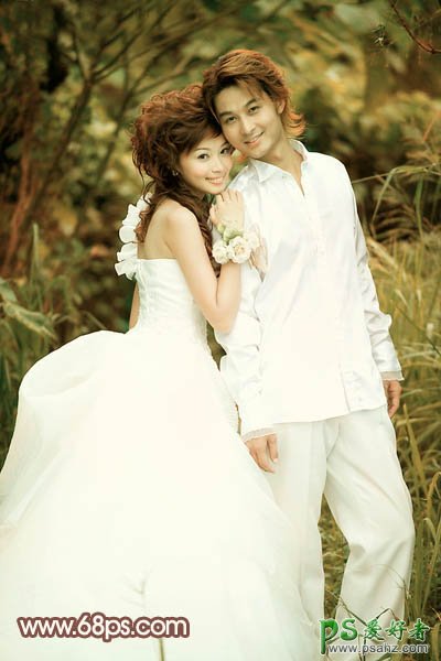 今天我们教大家学习一篇PS婚片后期调色教程实例,本教程介绍较为少见的淡褐色图片调色方法。大致过程:调色的时候先用渐变映射调出褐色的底色,然后在Lab模式下给人物加上甜美色,后期再适当加上一些补色,暗角和高光即可。 最终效果 原图 1、打开