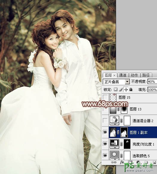 15、感觉人物衣服部分的细节丢失太多需要再还原一下。把背景图层复制一层,按Ctrl + Shift + ] 置顶,按Ctrl + Shift + U 去色,图层混合模式改为“正片叠底”,不透明度改为:40%,按住Alt 键添加图层蒙版,用白色画笔把衣服细节部分擦出来,效果如下图。