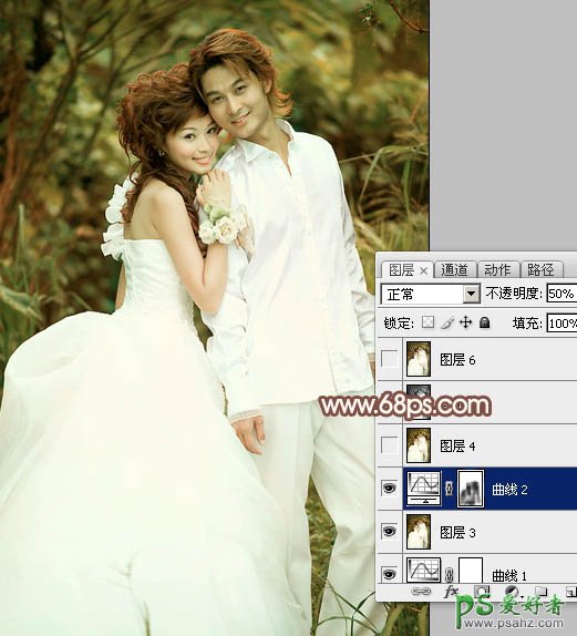 photoshop调出甜美色彩的外景情侣婚片