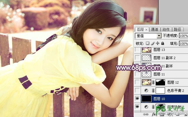 PS调色教程:给可爱的小美妞调出淡黄色效果