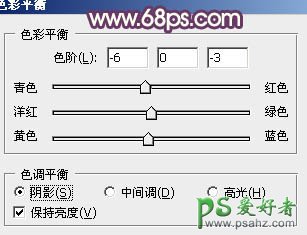 12、创建色彩平衡调整图层,参数设置如图24 - 26,效果如图27。