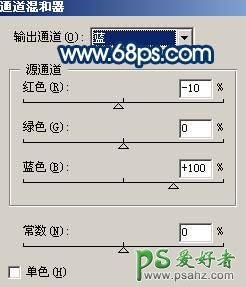 12、创建通道混合器调整图层,对蓝色通道进行调整,参数设置如图21,效果如图22。