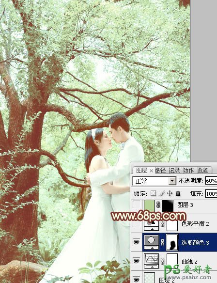PS婚片调色教程:给清新的情侣婚纱照调出淡绿效果