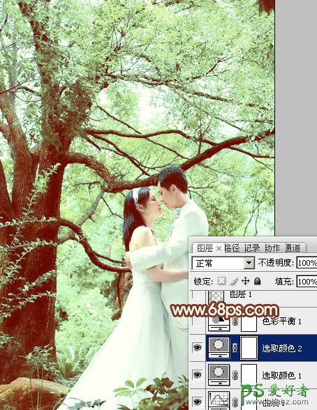 PS婚片调色教程:给清新的情侣婚纱照调出淡绿效果
