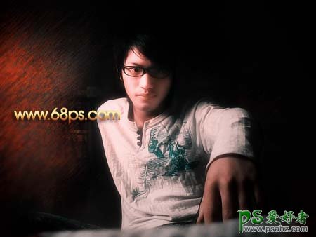 18、新建一个图层,盖印图层,选择减淡工具把人物左边的纹理背景涂亮,再用模糊工具稍微涂模糊一点,效果如图25。
