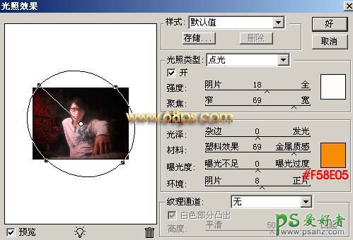 10、新建一个图层,盖印图层,执行:滤镜 > 渲染 > 光照效果,参数设置如图14,效果如图15。