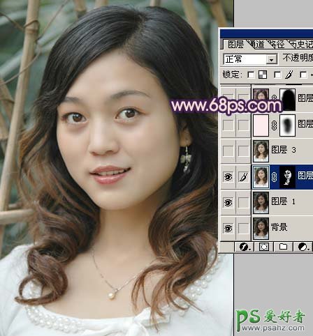 2、新建一个图层,按Ctrl + Alt + Shift + E盖印图层,执行:滤镜 > 模糊 > 高斯模糊,数值为3,确定后按住“Alt”键加上图层蒙版,这时候你就发现蒙版位置是黑色的,然后选择柔化的白色画笔在人物脸上及皮肤上有杂点的地方涂抹,给人物磨皮。图层及效果如图2。