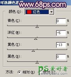 12、创建可选颜色调整图层,参数设置如图20,21,效果如图22。