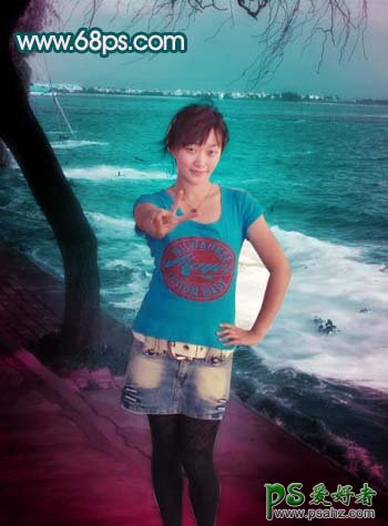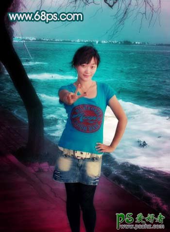 11、把人物图层复制一层,图层混合模式改为“滤色”,图层不透明度改为:50%,然后加上图层蒙版之保留人物脸部,其它地方用黑色画笔擦掉,如图21。这一步是给人物脸部美白。