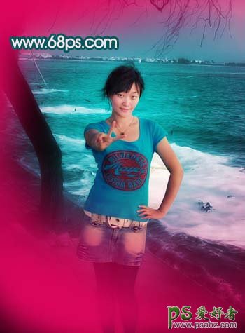 14、新建一个图层,前景颜色设置为:#DC055B,然后用画笔工具,画笔透明度为:30%左右,涂出图24所示的色块,然后把图层混合模式改为“正片叠底”,图层不透明度改为:30%,效果如图25。