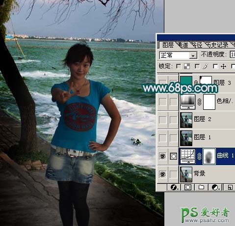 PS给海景小美女照片调出亮丽色彩