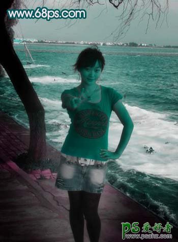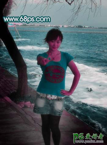 PS给海景小美女照片调出亮丽色彩