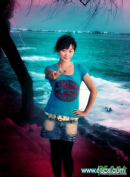 PS美女照片调色实例教程,PS给海景小美女照片调出亮丽色彩,本教程的色彩有点类似于V2色彩。开始的时候需要把照片的色彩调暗,然后再用调色工具及通道调色。处理的时候需要把人物和背景分开调色。这样人物就比较好处理!