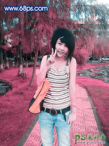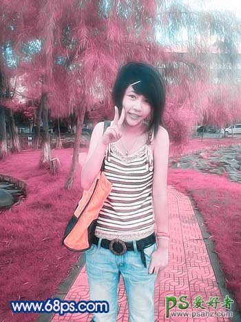 10、新建一个图层,盖印图层,执行:滤镜 > 模糊 > 高斯模糊,数值为8确定后把图层混合模式改为“滤色”,加上图层蒙版只保留上半部分,把下半部分用黑色画笔擦掉,如图16.人物图片会有点失真,暂时不要去管后面会修复。