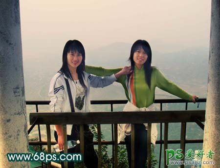 今天我们来学习一篇PS照片调色实例教程,利用PS给风景区里的一对漂亮姐妹照片调出朝霞效果,好看的风景人物照片,如果能够加上朝霞或者晚霞的阳光照射。照片就会显得更特别。尤其是人物图片可以增添蓬勃的朝气! 最终效果 原图 1、打开原图,把背景
