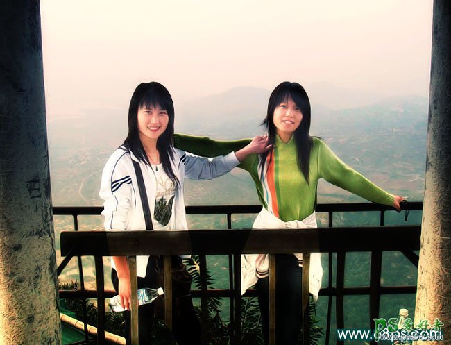 今天我们来学习一篇PS照片调色实例教程,利用PS给风景区里的一对漂亮姐妹照片调出朝霞效果,好看的风景人物照片,如果能够加上朝霞或者晚霞的阳光照射。照片就会显得更特别。尤其是人物图片可以增添蓬勃的朝气!
