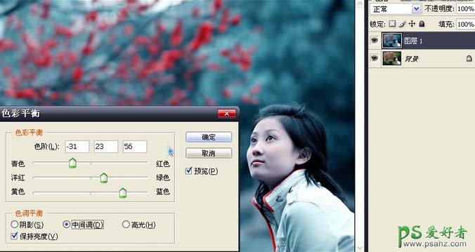 3、按Ctrl + B调色彩平衡参数设置如下图。