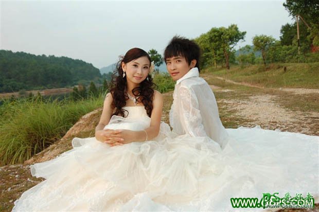,photoshop给浪漫情侣婚纱照进行润色调光。
