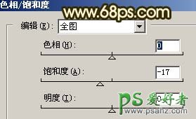 2、创建色相/饱和度调整图层,参数设置如图2,效果如图3。
