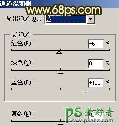 12、创建通道混合器调整图层对蓝色通道进行调整,参数设置如图18,效果如图19。