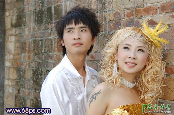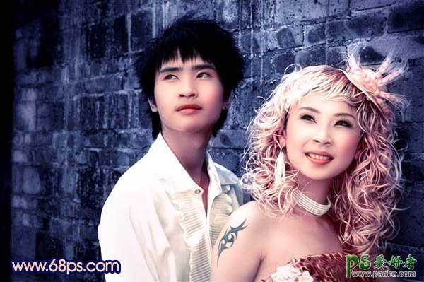 PS婚片调色实例教程,photoshop给年轻的小两口婚片调出冷暖艺术色调。本教程介绍人物图片的简单调色方法。调色的时候把背景跟主体人物分开来调,背景选用深蓝冷色调,人物用橙红暖色调,再整体融合处理即可。