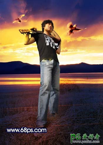 PS给旷野中的音乐男孩儿照片调出艺术写真效果