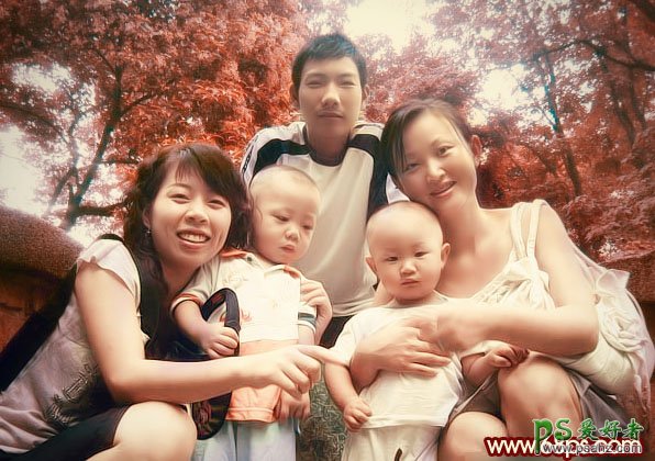 PS照片调色实例教程,PS给幸福的家庭照片调出古典艺术风格,本教程基本上是用通道来调色,分别在RGB和Lab通道下调出照片的不同色彩,然后再慢慢把色彩调和谐。调色的过程也比较简单,处理的时候注意不要破坏人物部分。