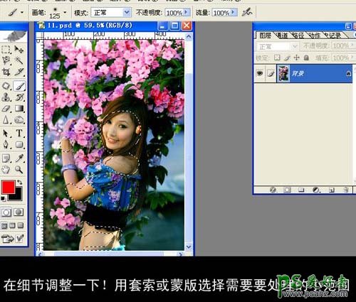 7、合并所有图层,用套索工具处理人物的皮肤部分。