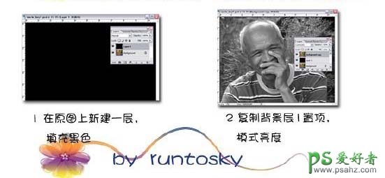 1、打开原图素材,新建一个图层填充黑色。 2、把背景图层复制一层,按Ctrl + Shift + ]移到图层的最上面,然后把图层的混合模式改为“变亮”。
