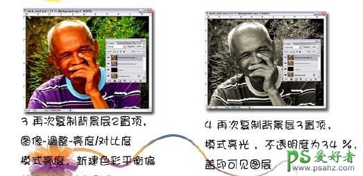 3、再把背景图层复制一层,按Ctrl + Shift + ]移到图层的最上面,执行:图像 > 调整 > 亮度/对比,适当把对比度调大一点,数值自己把握,然后把图层混合模式改为“亮度”。 4、把背景图层复制一层,按Ctrl + Shift + ]移到图层的最上面,然后把图层的混合模式改为“亮光”,不透明度改为:34%,然后盖印可见图层。