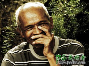 PS人物照片调色实例教程,PS给一位老人照片调出古铜色皮肤效果。 最终效果 原图 1、打开原图素材,新建一个图层填充黑色。 2、把背景图层复制一层,按Ctrl + Shift + ]移到图层的最上面,然后把图层的混合模式改为“变亮”。 3