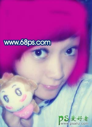 5、新建一个图层,前景颜色设置为:#C4069A,然后用画笔工具把人物头发涂成图6所示的样子,涂好后把图层混合模式改为“正片叠底”,图层不透明度改为:50%,效果如图7。
