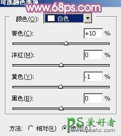 6、创建可选颜色调整图层,对红、白、黑进行调整,参数设置如图17 - 19,效果如图20。这一步微调图片主色,并给高光部分增加一些淡蓝色。