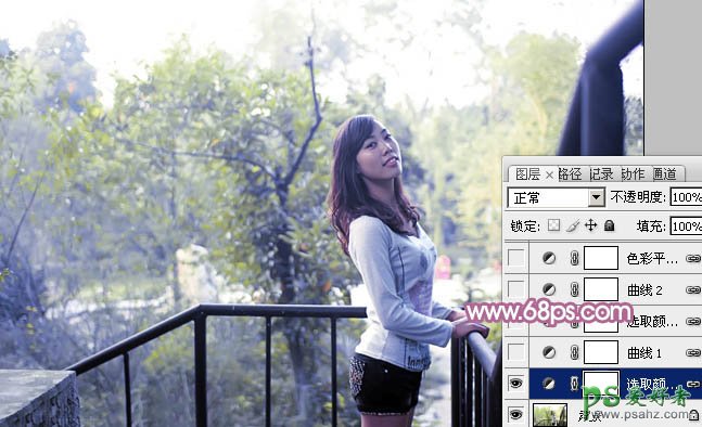 photoshop给漂亮的学生妹照片调出柔和的青色调