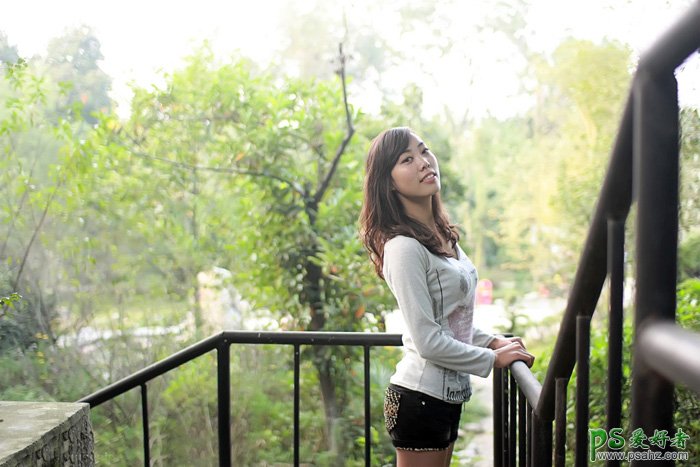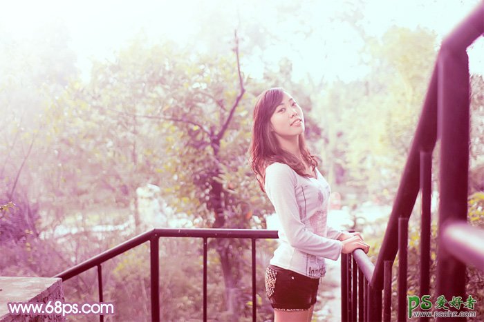 PS美女照片调色实例教程,PS给外景漂亮超短裙女生照片调出唯美紫色调,素材图片颜色以绿色为主,要转为比例适当的双色图片还真有点难度,可以考虑把图片中间调部分的颜色与其它部分的颜色分开,这样调色就容易很多。
