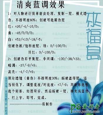 6、新建一个图层,按Ctrl + Alt + Shift + E盖印图层,适当的锐化一下,然后传教亮度/对比度调整图层,参数设置:+7/-9。最后用矩形在画面左边款选以部分填充蓝色再打上文字,完成最终效果。