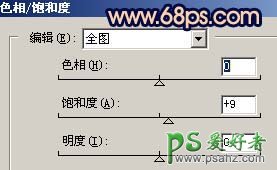 5、创建色相/饱和度调整图层,参数设置如图8,效果如图9。