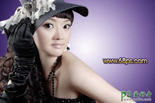 1、打开原图素材,新建一个图层,选择渐变工具颜色设置如图1,然后拉出图2所示的径向渐变效果。
