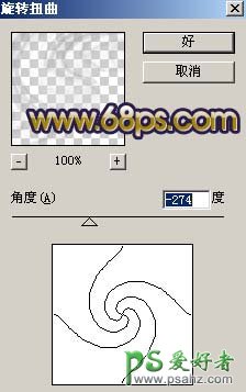 > 扭曲 > 旋转扭曲,参数设置如图6,确定后把图层混合模式改为“叠加”,效果如图7。