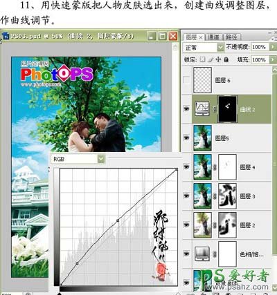 11、用快速蒙版把人物皮肤选出来,创建曲线调整层,作曲线调节。