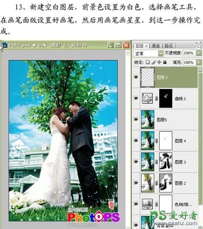 12、新建一个图层,前景色设置为白色,选择画笔工具在画笔面板设置好画笔,然后用画笔画一些小白点,到这一步操作完成。