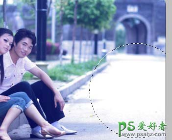 3、新建一个图层,选择椭圆选框工具在图片右边位置拉一个如图6所示的椭圆,按Ctrl + Alt + D羽化,数值为45,然后填充颜色:#FDA8EE,确定后把图层混合模式改为“叠加”,效果如图7。