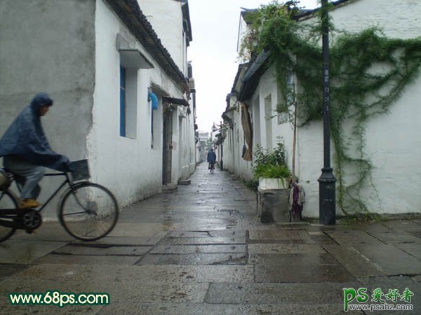 ,PS给江南街景照调出怀旧淡黄色彩。本教程介绍古典色调的调色方法。原图素材是张江南特色的风景照片,调色的时候大致是参考江南水墨画中的淡黄色,有点怀旧的味道。