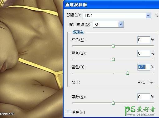PS美女照片调色实例教程,PS给性感丰韵的少女照片调出质感的暗金色,本教程介绍暗调质感肤色的调色方法。调色的时候先给人物麽好皮,然后把色调调暗一点,用减淡工具加强皮肤部分的质感,最好整体调色即可。 最终效果 原图 1、打开原图素材,简单的