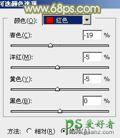 9、创建可选颜色调整图层,对红、黄、白进行调整,参数设置如图23 - 25,确定后按Ctrl + Alt + G 创建剪贴蒙版,效果如图26。这一步微调人物肤色。
