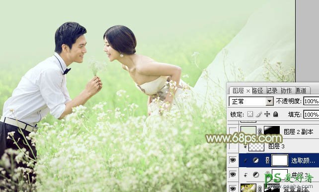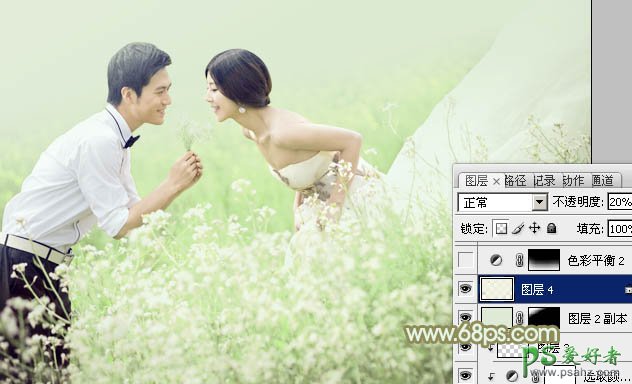 PS婚片调色教程:给外景婚片少女调出油菜花效果