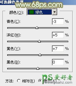 11、创建可选颜色调整图层,对黄、绿、白进行调整,参数设置如图28 - 30,效果如图31。这一步主要给图片的高光部分增加淡青色。