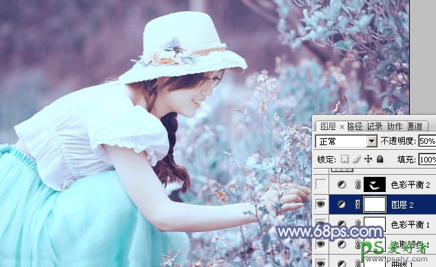 6、按Ctrl + J 把当前色彩平衡调整图层复制一层,不透明度改为:50%,效果如下图。