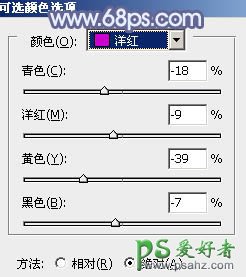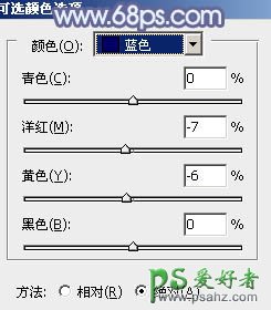 4、创建可选颜色调整图层,对蓝、洋红、白、中性、黑进行调整,参数设置如图9 - 13,效果如图14。这一步主要给图片的高光部分增加淡蓝色。