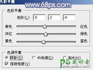 5、创建色彩平衡调整图层,对阴影,高光进行调整,参数设置如图15,16,效果如图17。这一步微调暗部及高光部分的颜色。
